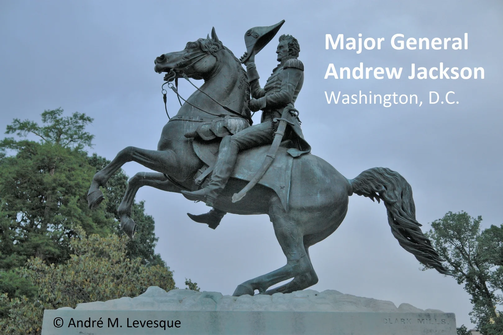 Self-taught in art by studying European prints of such sculptures, it is amazing that Mills had never seen his subject nor an equestrian statue until 1847 – when he was asked to submit a model of such a sculpture in honour of the triumph and overwhelming military achievements of Major General Andrew Jackson (15 March 1767 – 8 June 1845), the national hero of the Battle of New Orleans and later, the seventh president of the United States from 1829 to 1837. General Jackson was considered at that time to be 'the most distinguished citizen of the country'. In preparation for completing his design, Mills studied the anatomy of various breeds of horses and even bought a Thoroughbred horse, named 'Olympus', that would help him model Jackson's stance in the heat of the battle on 8 January 1815. On the European scene, it was unfortunate that Mills was not aware of the equestrian statue of Philip IV of Spain located in the centre of Plaza de Oriente in Madrid, considered a masterpiece not only for its artistic value but also for its technical characteristics. Italian sculptor Pietro Tacca (16 September 1577 – 26 October 1640) began the colossal bronze sculpture in 1634 and was transported to Madrid in 1640, the year of his death. Although Tacca begun his work in the classic position of that time – standing on the three or four legs of the horse – he chose to depict the monarch where the horse is rearing and supported on its hind legs. In order to tackle the difficult problem of designing the statue’s centre of gravity, Tacca received assistance from his fellow countryman and genius, Galileo Galilei (15 February 1564 – 8 January 1642). Galileo first proposed to have a hollow front and solid rear but then "devised to make a steel bar divided in three, running from the chest, to the horse's tail and hind legs. Thus, the tail would also be attached to the base of the sculpture, which provides part of the secret of the horse's balance." Notwithstanding that King Philip's statue may be considered the first rampant equestrian statue, it is not self-balanced as it is held in place by a steel rod to the base – discreetly through its horse's tail. One thing for certain, Mills would have been inspired by this artistic and scientific marvel.
