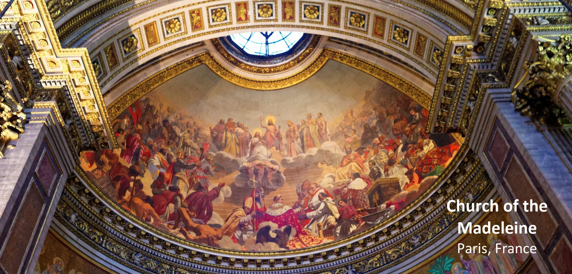 As this neoclassical jewel – designed by Pierre-Alexandre Vignon (1763 – 1828) – with its dome, paintings, and names of the men who took part in the battles of Ulm, Austerlitz and Iena (1805 – 1806) was nearly completed at the time of Napoleon's ashes being returned to the Invalides, it is most appropriate that the Church of the Madeleine was chosen to launch the anniversary tribute to a man who could not have shaped the world according to his personal vision without his soldiers. Shown in the photograph is the Church’s cupola of the choir which displays a mural entitled "The History of Christianity" (1835 – 1838). Completed by French painter Jules-Claude Ziegler (16 March 1804 – 25 December 1856), it illustrates Mary Magdalene ascending into heaven borne by three angels. "Beneath her is Napoleon in his coronation robes, positioned center stage, his figure directly aligned with Christ’s. Facing him is Pope Pius VII, with whom he signed the Concordat of 1801, a document which re-established the authority of the Catholic church in France after the Revolution…". This is the only fresco in a Parisian church to include a figure of Napoleon. It is worth noting that it took more than three decades from the time Napoleon awarded the building contract to the completion of this mural during the July Monarchy (1830 – 1848) under King Louis-Philippe I (6 October 1773 – 26 August 1850).