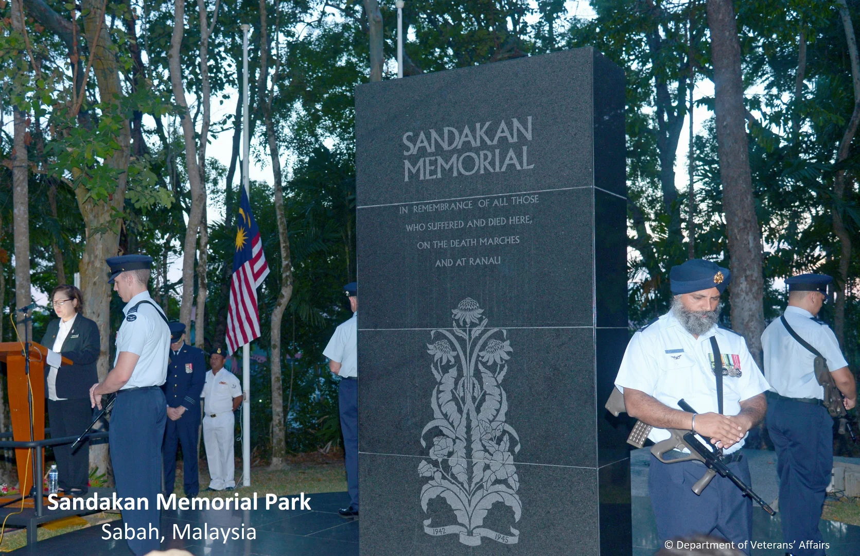 Beside this site stands an Australian memorial dedicated to all those who suffered and died here, in the camp, and on the death marches in Sandakan and Ranau, Malaysia.